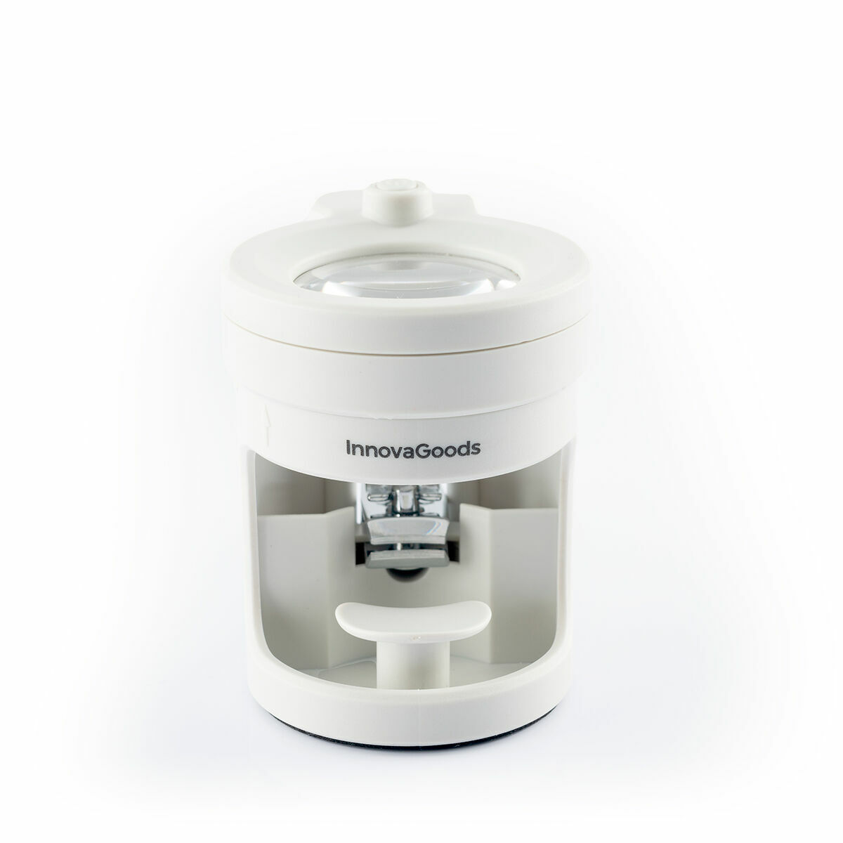 - Suurennuslasi, suurennus x8: tässä suurennuslasilla ja valolla varustetussa kynsileikkurissa on kahdeksankertainen akryylilinssi, joka suurentaa kynttä ja helpottaa tarkempaa leikkaamista. Kynsileikkuria voidaan käyttää myös ilman suurennuslasia, koska suurennuslasi on irrotettava ja sitä voidaan käyttää itsenäisesti muihin tehtäviin.